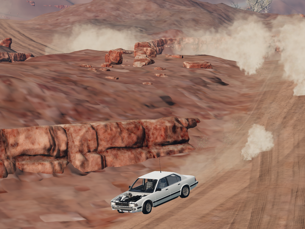a little bit of corruption at the bottom (edit: lmao looks like missing content texture), but this is the car that i drove with the entire uphill mountain section in one go. rear right is missing, but it’s fwd anyways, so…