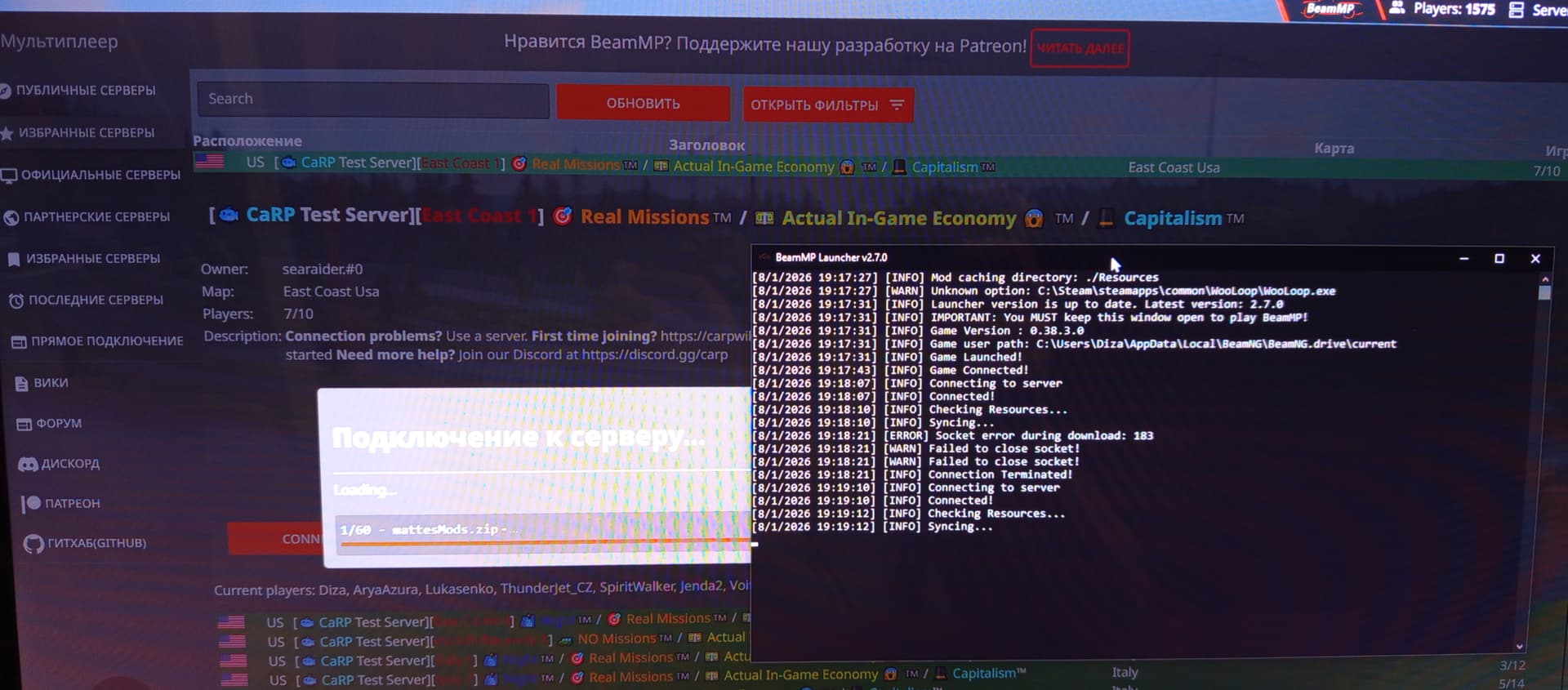 **Please describe the issue you are having in as much detail as possible:**не скачиваются моды при заходе на сервер, а если моды уже есть то все машины стоят и через некоторое время выкидывает сервера