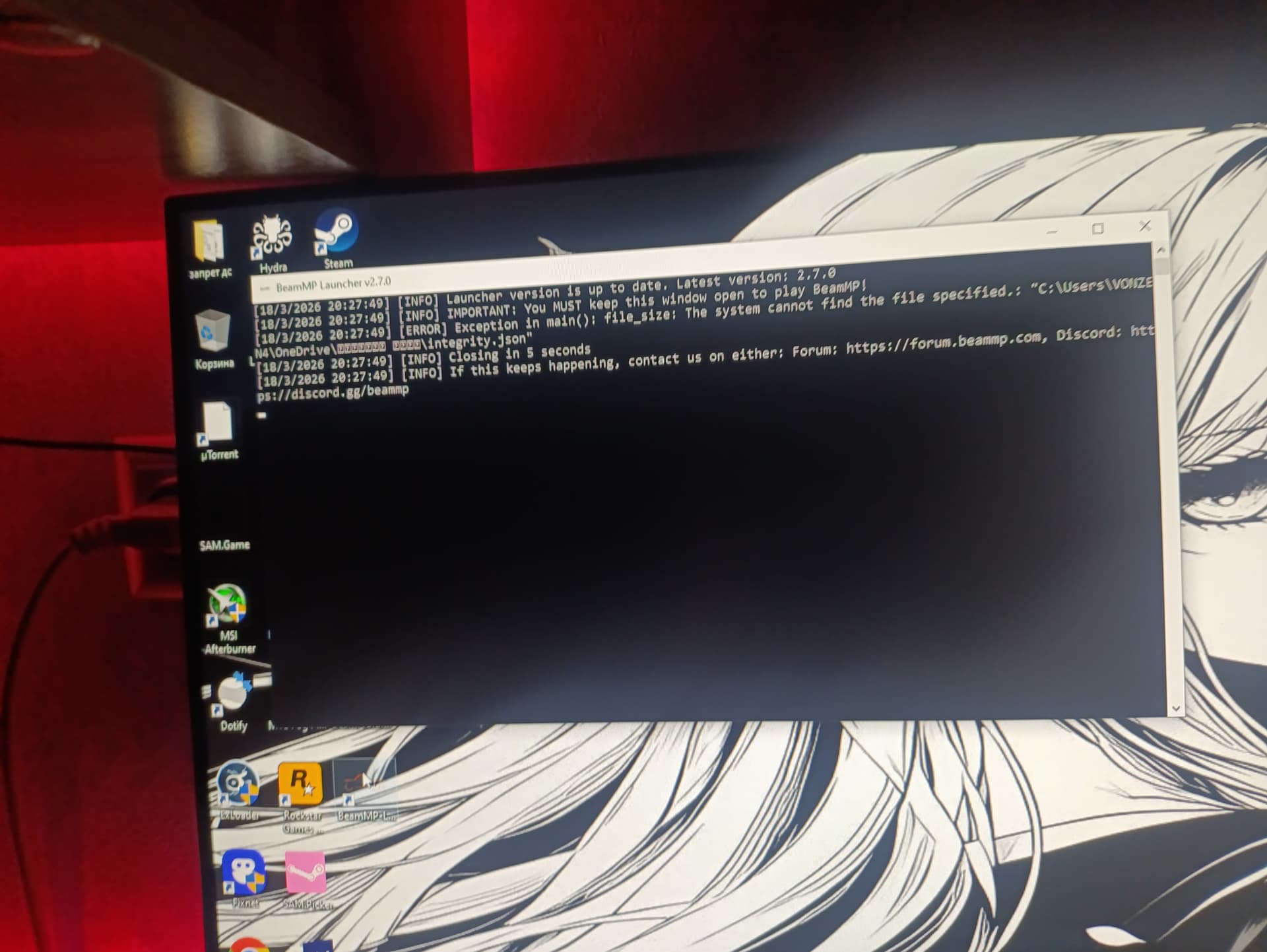 К сожалению, поддержка пиратских копий недоступна Если у вас версия из Steam, я могу вам помочь Модераторы утверждают, что пиратские копии BeamNG.Drive запрещены.